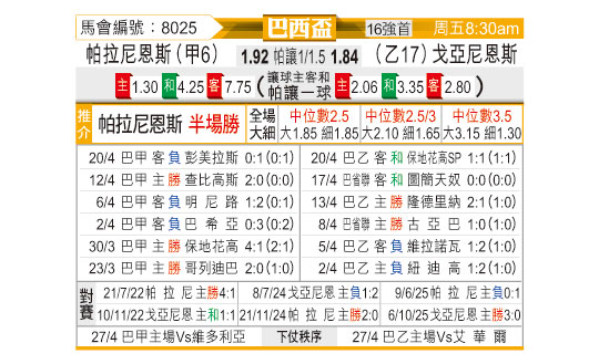 [巴西杯] 巴拉纳竞技vs戈亚尼亚竞技