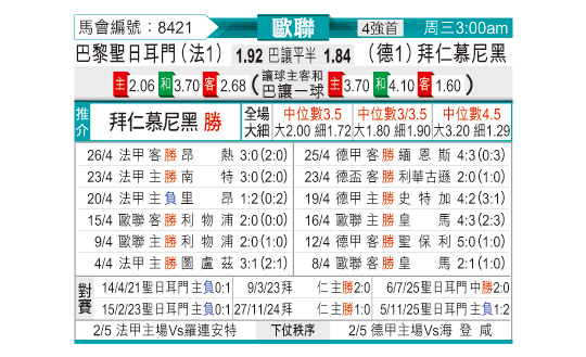 [欧冠] 巴黎圣日耳曼vs拜仁慕尼黑