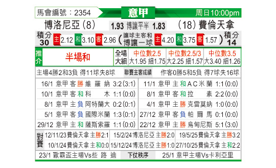 [意甲] 博洛尼亚vs佛罗伦萨