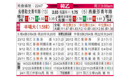[荷乙] 乌德勒支青年队vs埃因霍温青年队