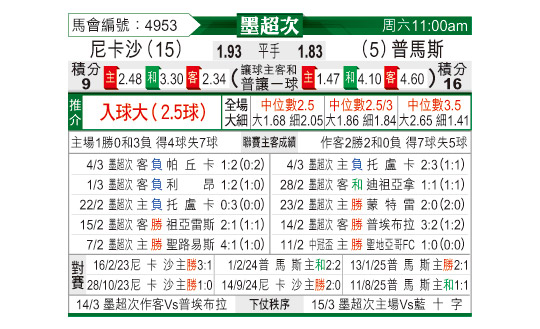 [墨西超] 内卡萨vs美洲狮