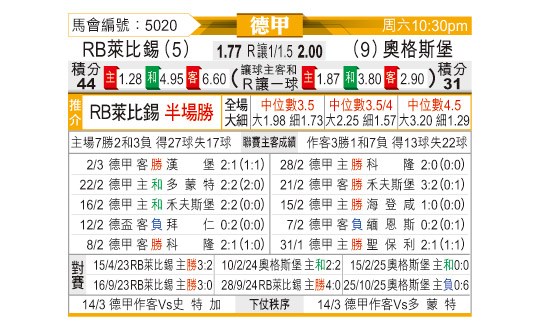 [德甲] RB莱比锡vs奥格斯堡