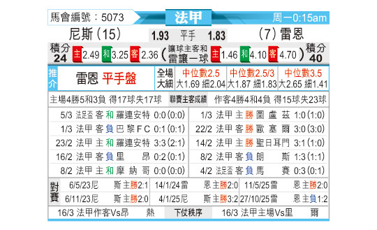 [法甲] 尼斯 vs 雷恩