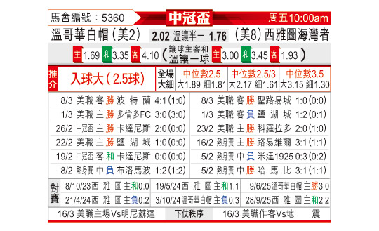[美冠杯] 温哥华白浪vs西雅图海湾人