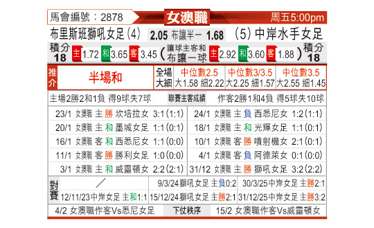 [澳女联] 布里斯本狮吼女足vs中岸水手女足