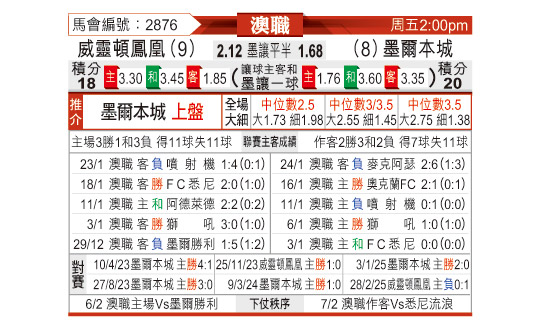 [澳超] 惠灵顿凤凰vs墨尔本城