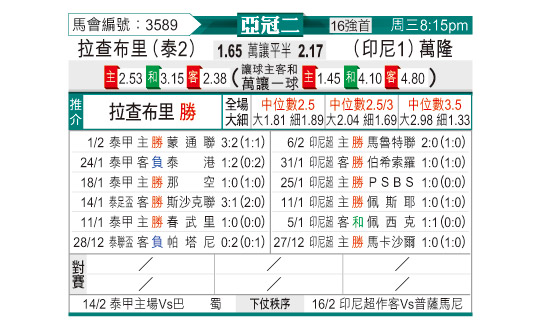 [亚冠] 拉查布里府vs万隆