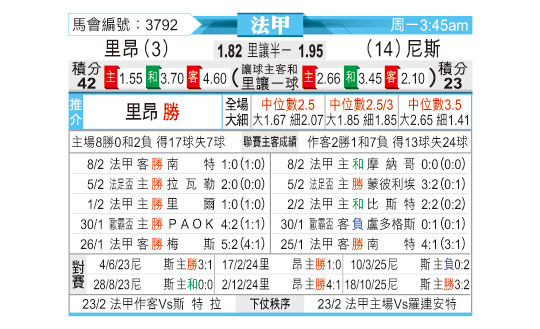 [法甲] 里昂 vs 尼斯