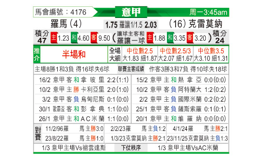 [意甲] 罗马vs克雷莫纳