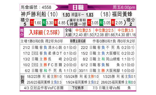 [日职] 神户胜利船vs福冈黄蜂